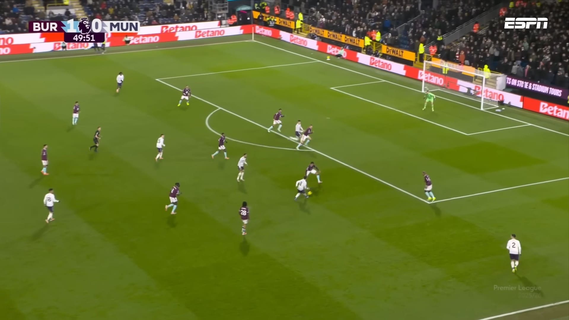 El final del primer tiempo el equipo levanto y mejoro muchisismo, la diferencia de un esquema a otro (del de Amorim al de Fletcher) es que finalmente Burno Fernandes puede jugar en su posición natural y el cambio no solo le beneficia a el si no todo el equipo, sobre todo a Benjamin Šeško que todo el partido el portugués lo estuvo buscando y tambien le indicaba, sobre todo en el primer tiempo, como hacer las diagonales para que sus pases pudieran encontrarlo.